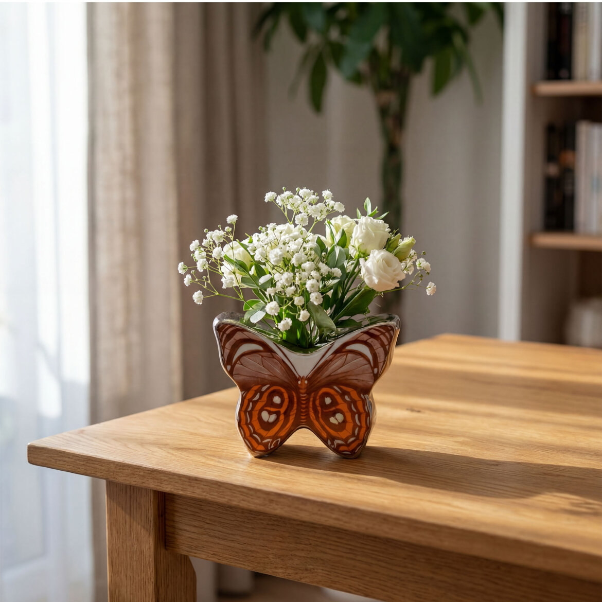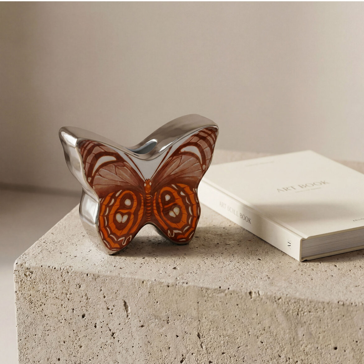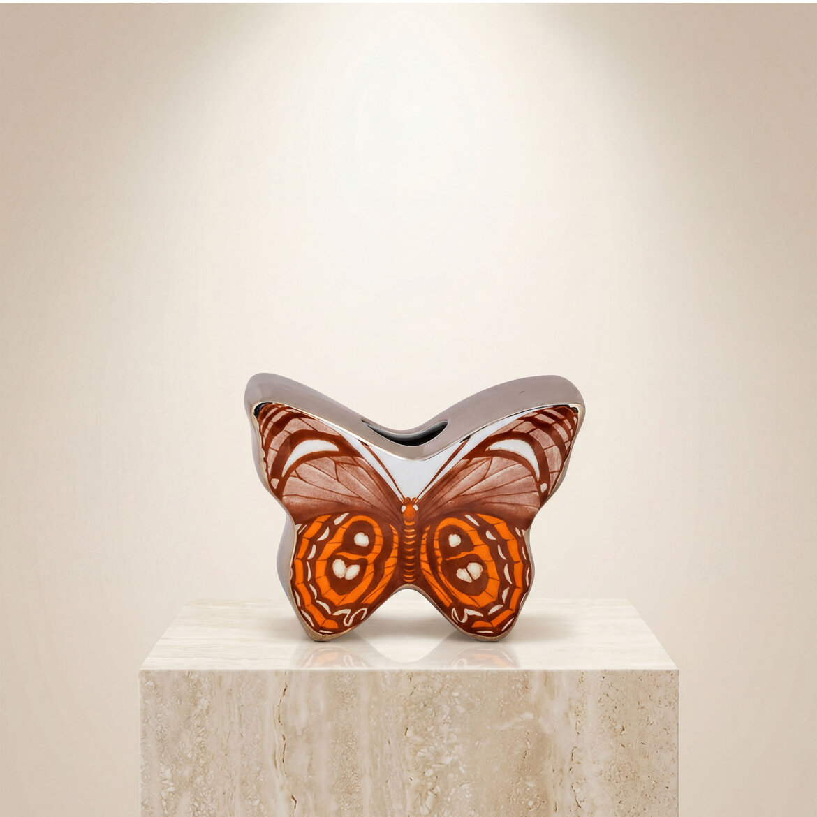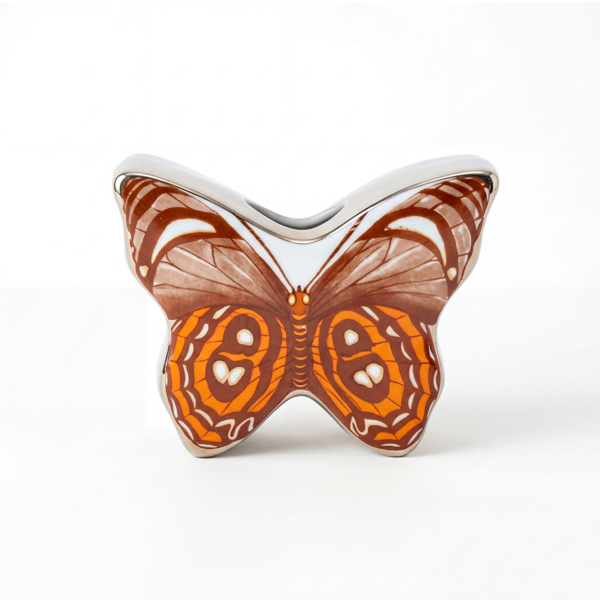 Kelebek formundan ilham alan bu porselen vazo, özgün tasarımı ve dikkat çekici desenleriyle yaşam alanlarınıza sanatsal bir dokunuş katar. Parlak porselen yüzeyi ve modern çizgileri sayesinde salon, masa, konsol ve raf dekorasyonunda şık bir tamamlayıcı olarak kullanılabilir.