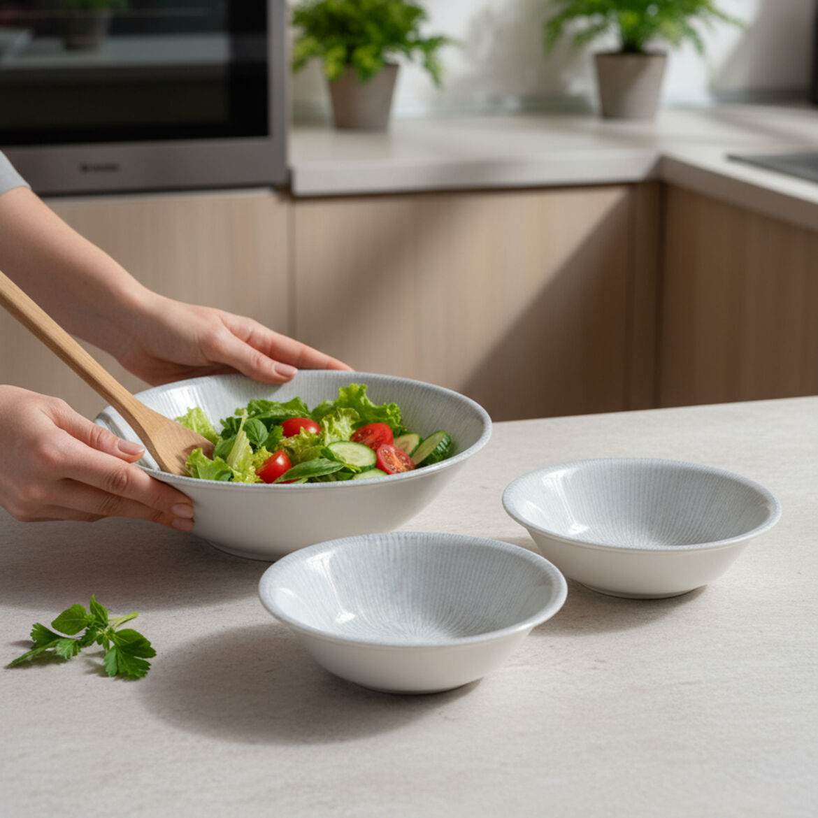 Salata, meze, çorba, atıştırmalıklar ve bowl yemekleri için ideal olan kaseler, yüksek kalite standartlarında ve doğal kökenli hammaddelerden üretilmiştir. Bu sayede sofralarınıza sağlıklı ve lezzetli yemek keyfi sunar.