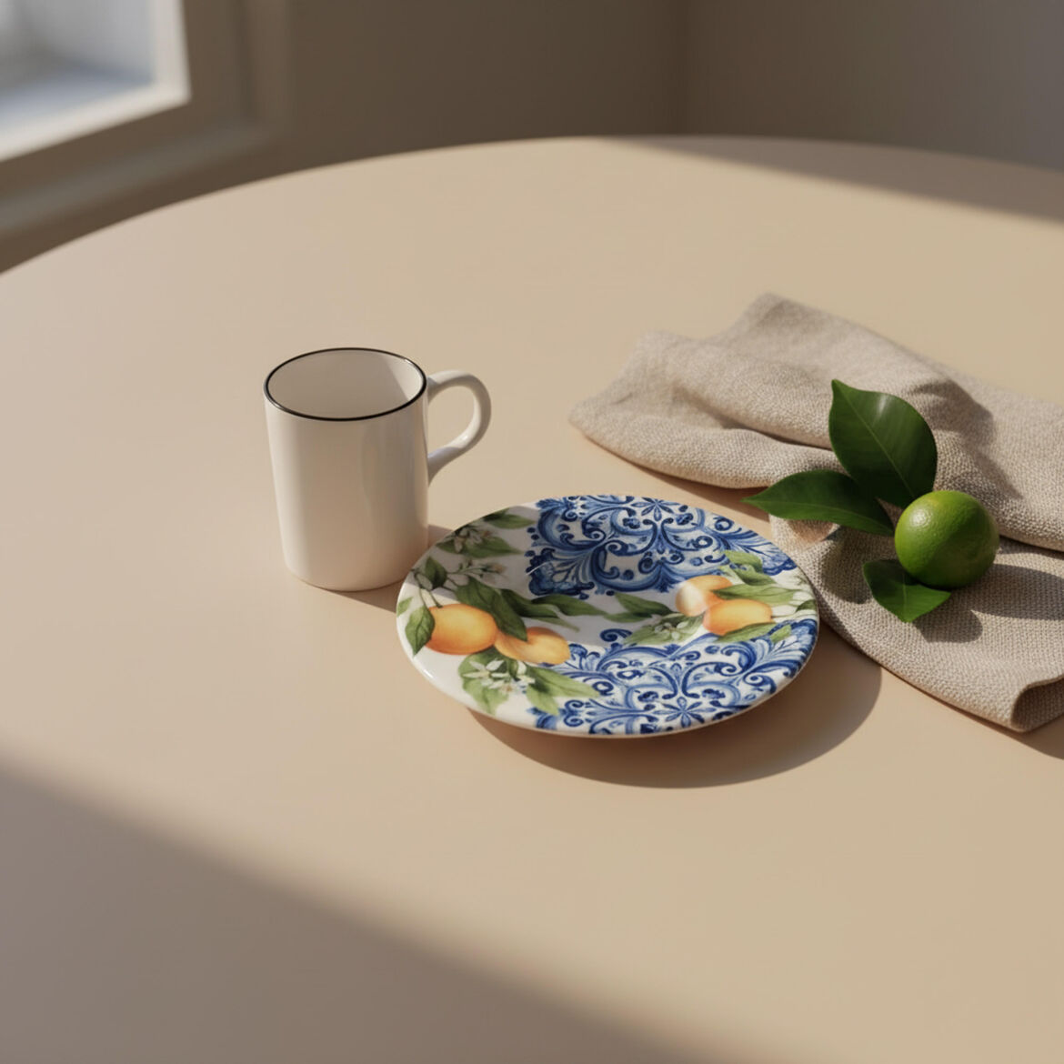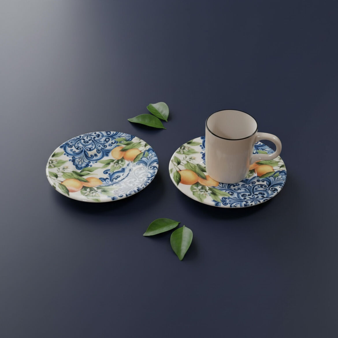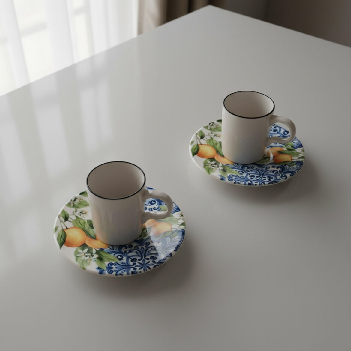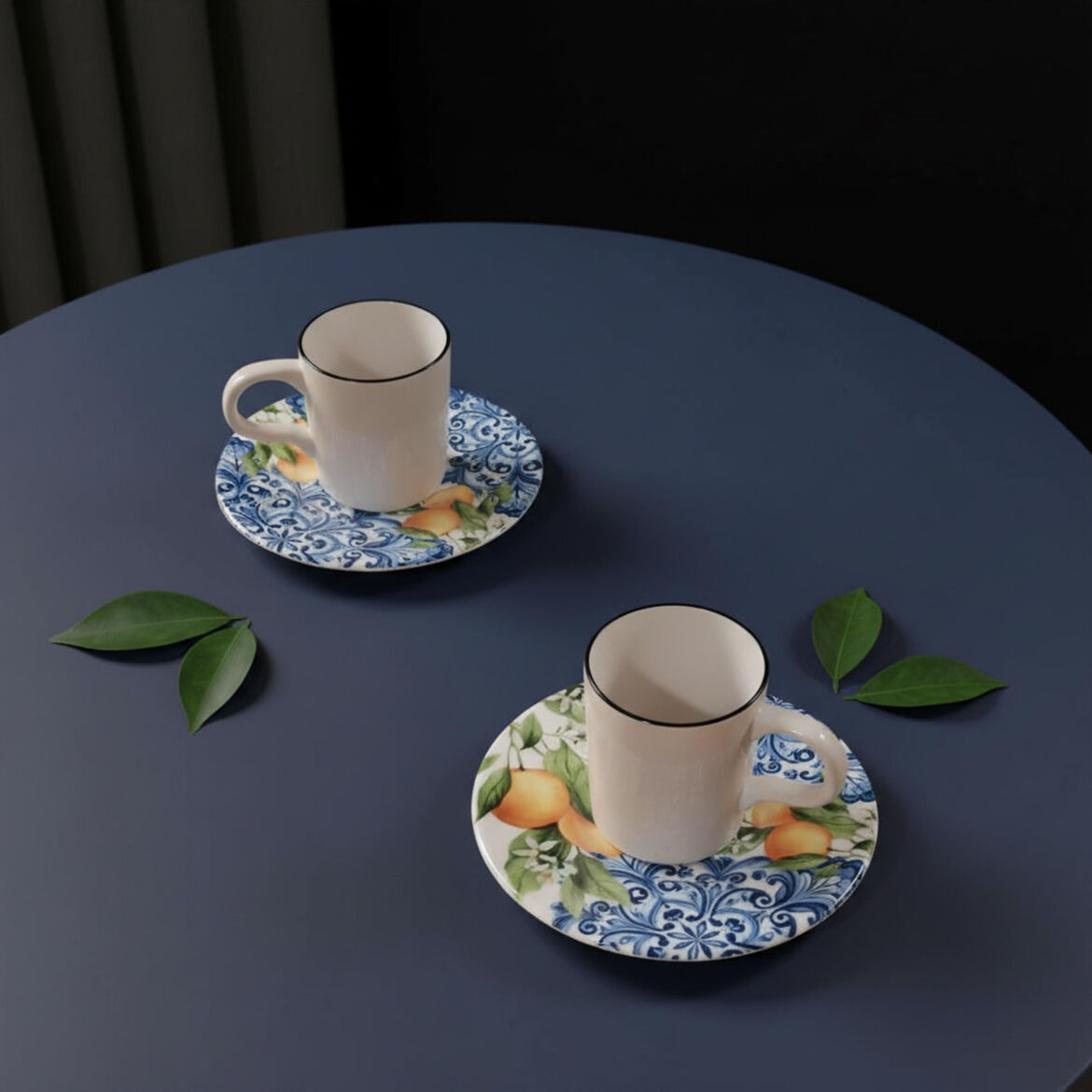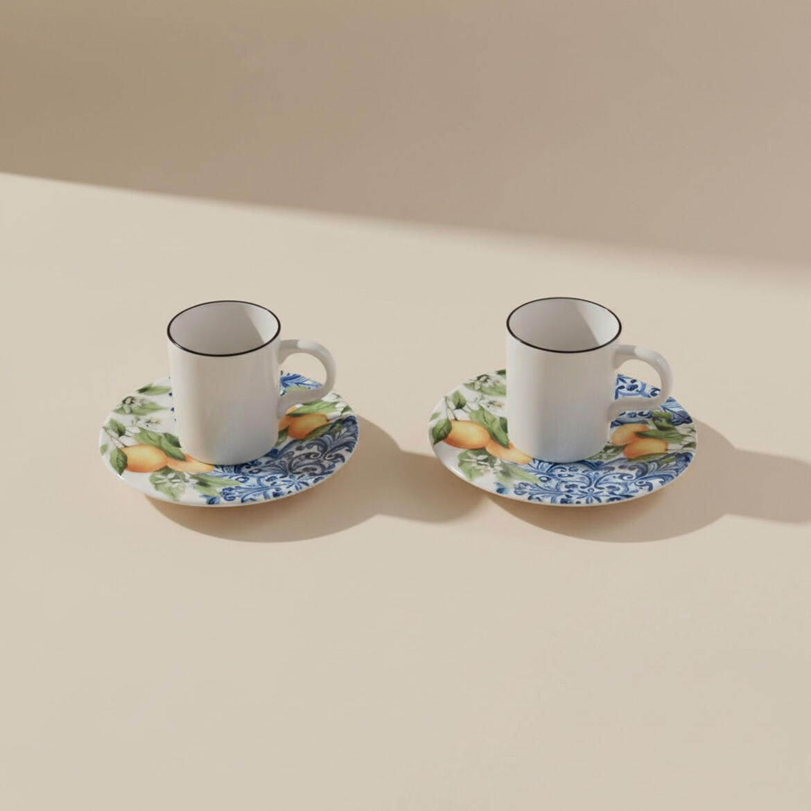 Canlı limon deseniyle sofralara taze ve enerjik bir görünüm kazandıran bu 2 kişilik fincan takımı, porselen yapısı sayesinde hem hafif hem de uzun ömürlü bir kullanım sunar. Üzerindeki baskılar, ömür boyu kalıcılık sağlayan dijital teknikle uygulanmıştır; zamanla solma, akma veya renk kaybı yaşanmaz.