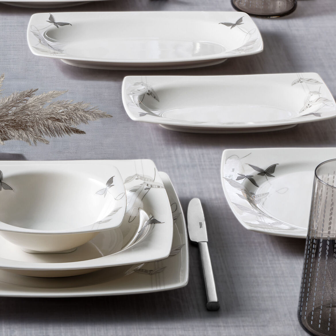 Sadeliği ve zarif dokunuşuyla hayat bulan bu yemek takımı, modern sofraların vazgeçilmezi. Her detayı özenle tasarlanmış bu set, günlük kullanımda pratikliği, özel davetlerde ise eşsiz şıklığı bir arada sunar. Sofranızda fark yaratmak ve unutulmaz anlar yaşatmak için mükemmel bir seçim.