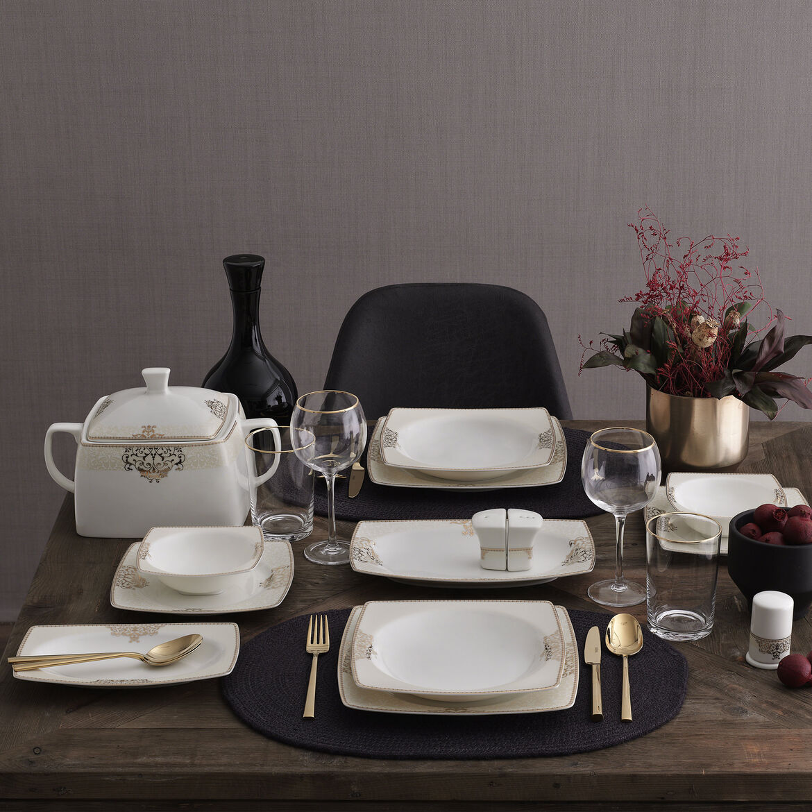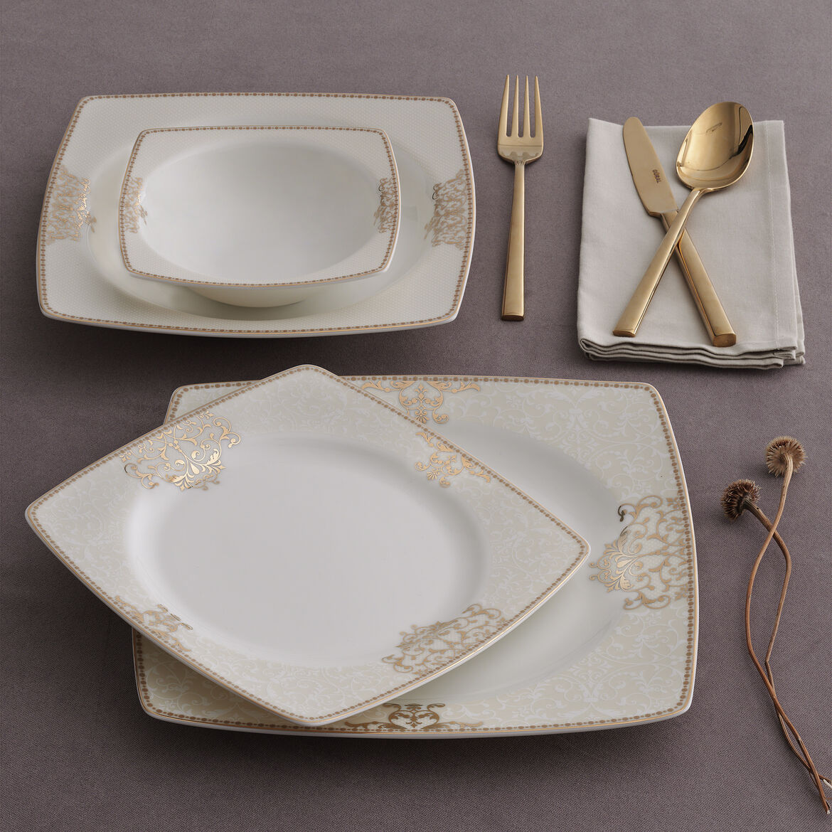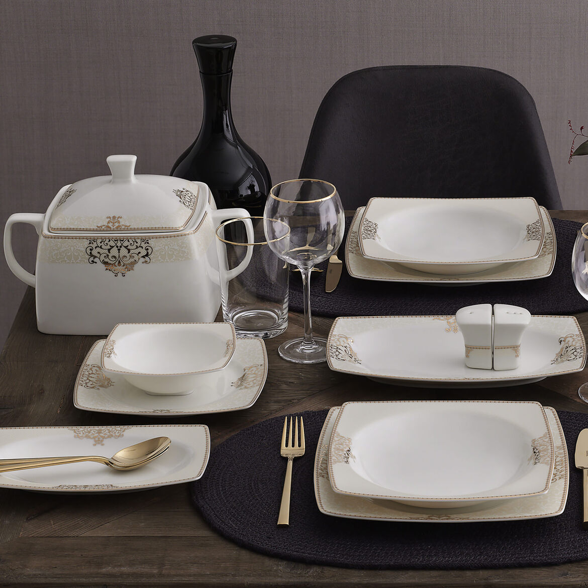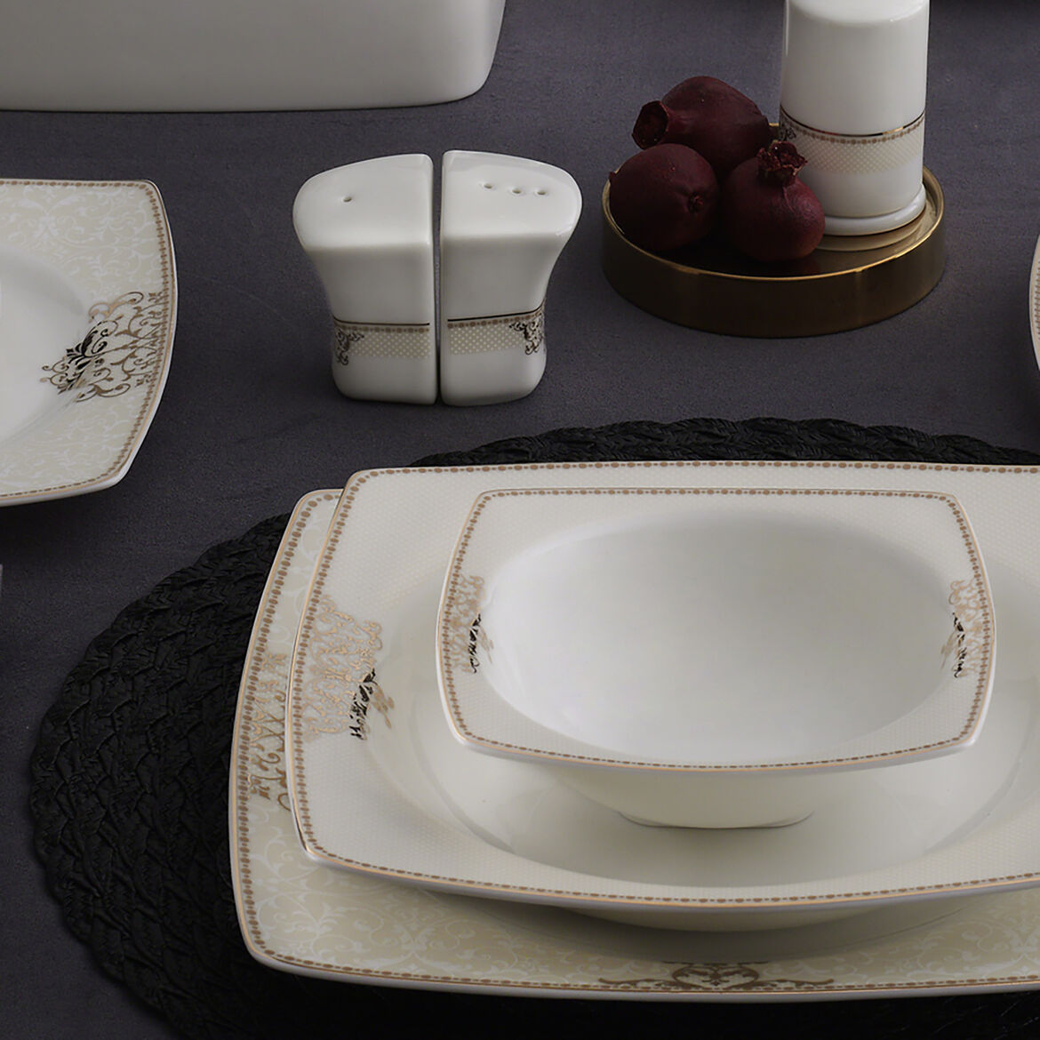 12 Adet 26X26 Cm Servis Tabağı12 Adet 23X23 Cm Yemek Tabağı