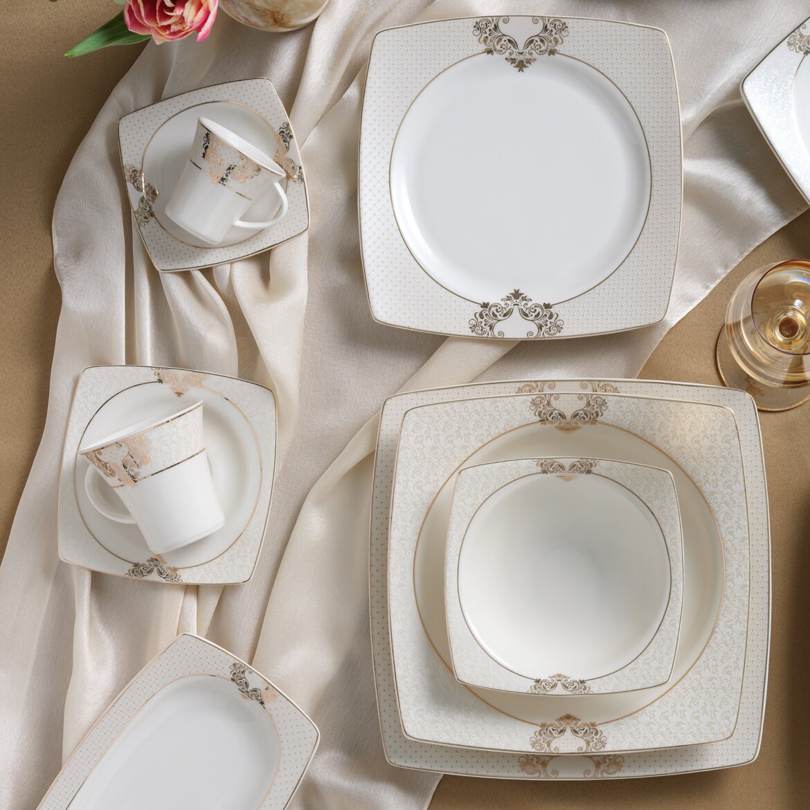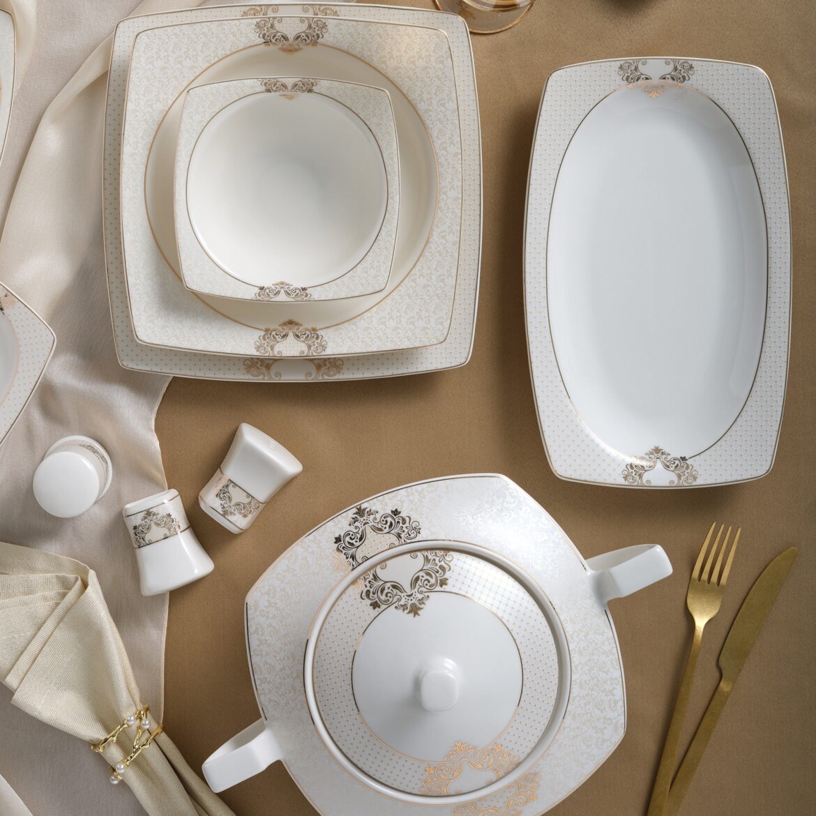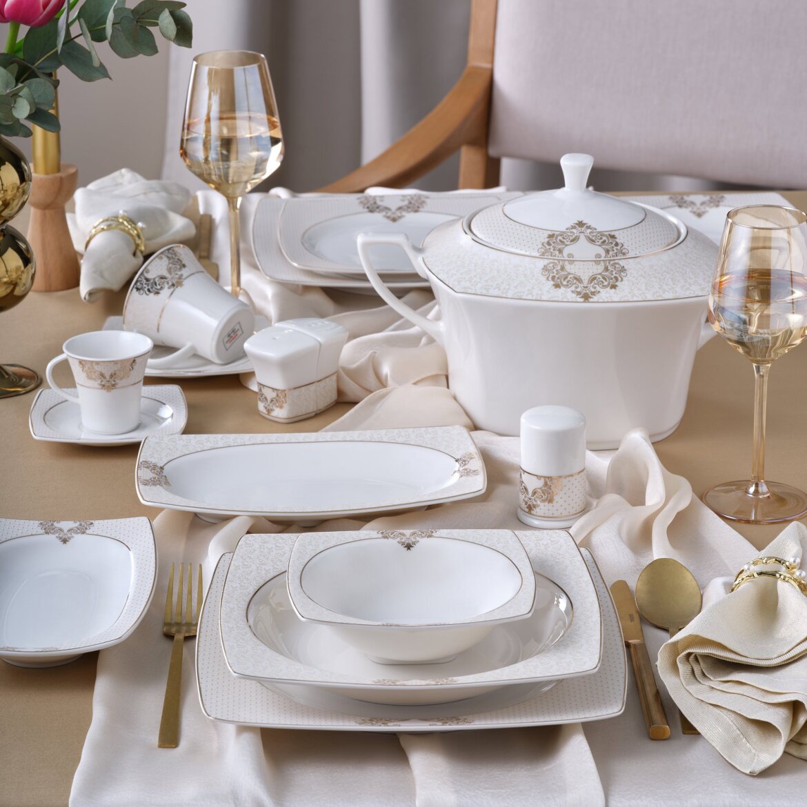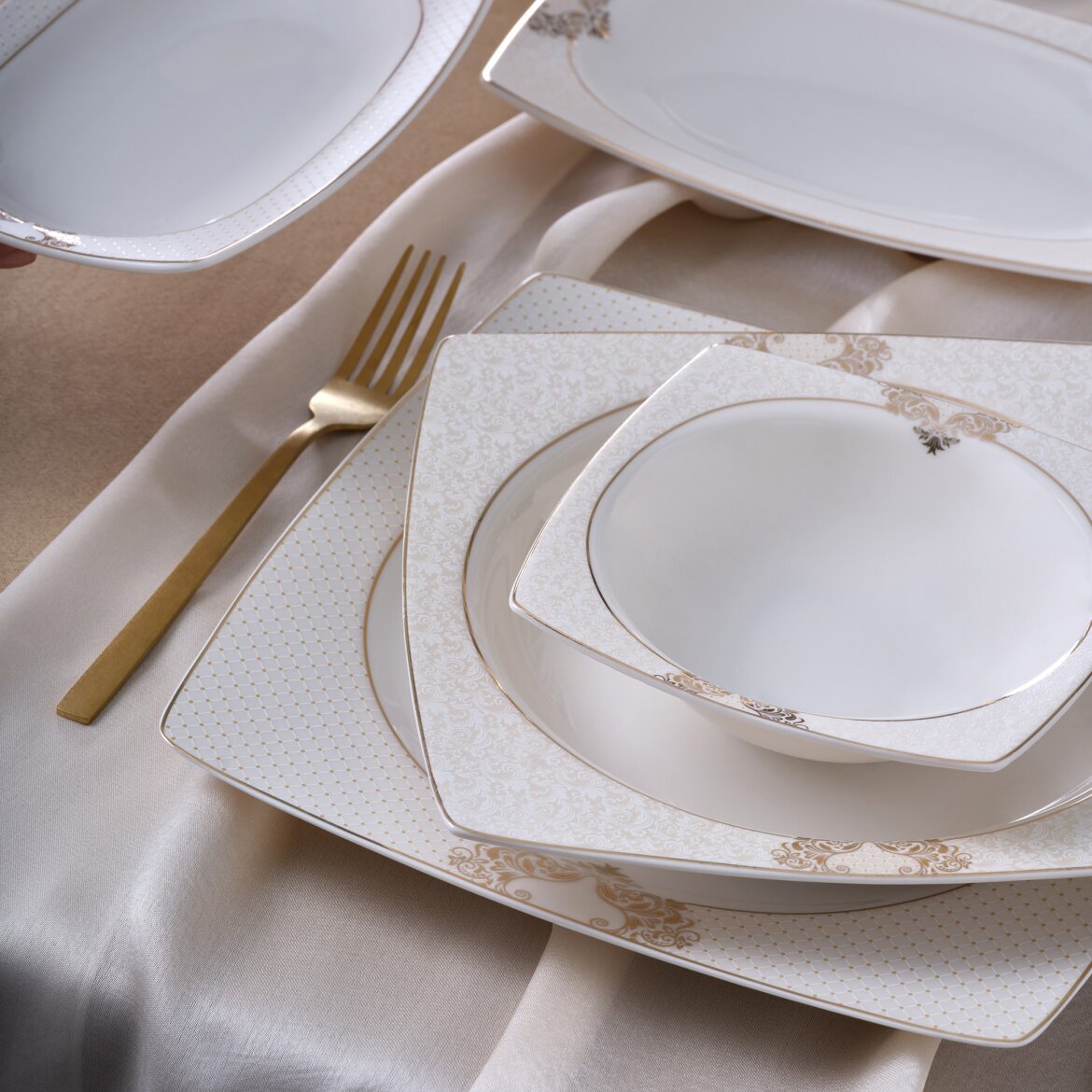 Türkiye'de İlk kez Güral Porselen tarafından üretimi gerçekleştirilen şeffaf, dayanıklı, ışık geçirgen ve son derece zarif krem rengi bone porselen ürünlerin Caroline serisi kare bone yemek takımları mükemmel sunumlar için tasarlandı…