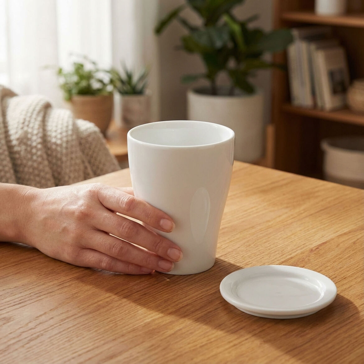 Minimal tasarımıyla öne çıkan bu porselen kapaklı mug, sıcak ve soğuk içeceklerinizi keyifle tüketmeniz için tasarlandı. Yüksek kaliteli porselen yapısı sayesinde hem dayanıklı hem de hijyeniktir. Kapak kısmı içeceğinizi uzun süre sıcak tutarken aynı zamanda bardak altlığı olarak da kullanılabilir.