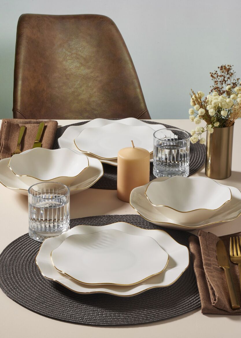 Nesrin yemek takımı , aile yemeklerinden şık davet sofralarına kadar her anınızı unutulmaz kılmak için tasarlandı.Sade ama etkileyici tasarımı, hem günlük kullanıma hem de özel davetlerinize mükemmel uyum sağlıyor.Sofralarınızı bu eşsiz dokunuşla taçlandırmaya ne dersiniz?