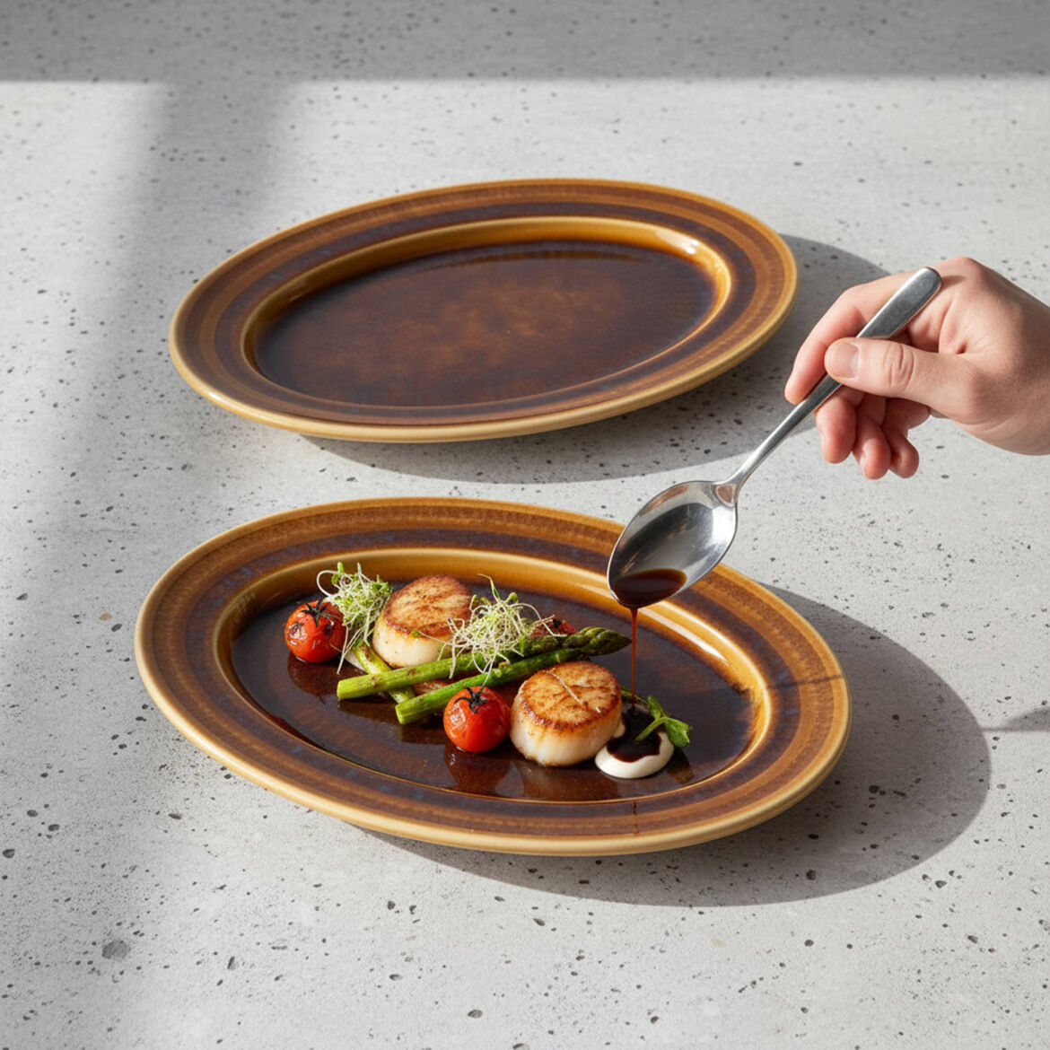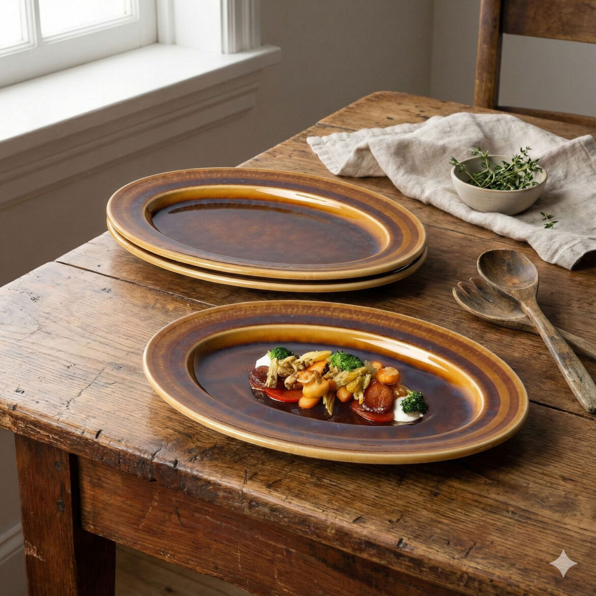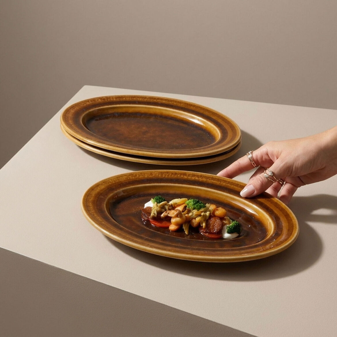 Reaktif sırlama işlemi her ürüne kendi benzersiz karakterini ve eşsiz derinliğini kazandırır. Bu özel bitirme tekniği, doku ve tonu harmanlayarak her sofra düzenine lüks ve zarif bir çekicilik katar.