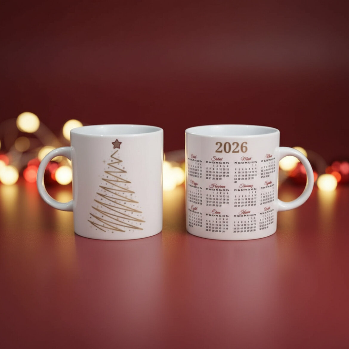 Bir yüzünde sade ve kullanışlı 2026 takvimi, diğer yüzünde doğal tonlarda boyanmış çam ağacı bulunur. Hem dekor hem kullanım amacıyla çalışma masanızda yer verebileceğiniz bu mug, sıcak içecekler için ideal olduğu gibi yılbaşı döneminde hoş bir masa aksesuarı ve hoş bir hediye olarak kullanım alanları sunar.