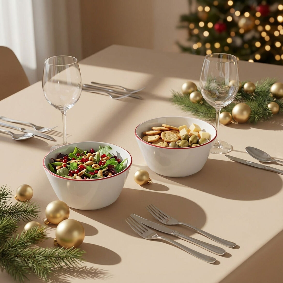 Yuvarlak formu ve ince kırmızı file detayıyla öne çıkan Red Glow Kase, salata, atıştırmalık ve servis sunumlarında şık bir tamamlayıcıdır. Yılbaşı sofralarına sıcak bir atmosfer katarken yıl boyunca her kullanımda modern ve sade bir estetik sunar. Dayanıklı bone porselen yapısıyla hem dekoratif hem işlevseldir.