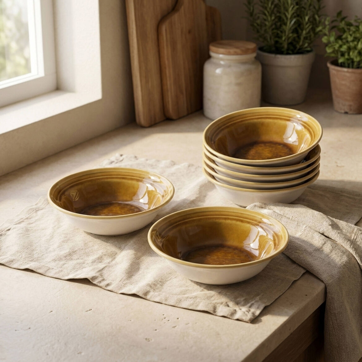 Reaktif sırlama işlemi her ürüne kendi benzersiz karakterini ve eşsiz derinliğini kazandırır. Bu özel bitirme tekniği, doku ve tonu harmanlayarak her sofra düzenine lüks ve zarif bir çekicilik katar.