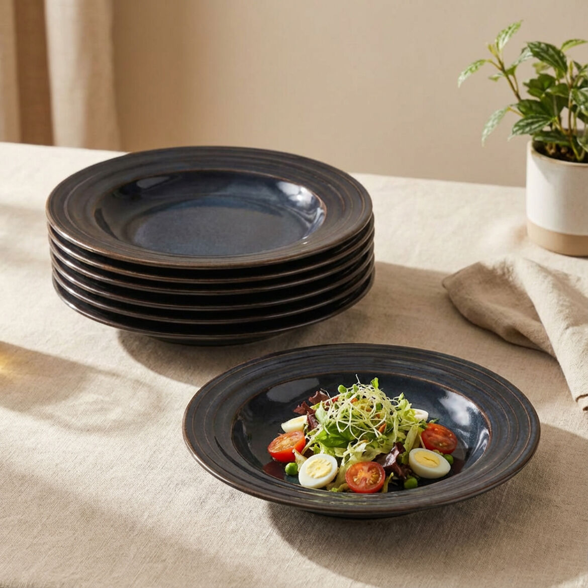 Reaktif sırlama işlemi her ürüne kendi benzersiz karakterini ve eşsiz derinliğini kazandırır. Bu özel bitirme tekniği, doku ve tonu harmanlayarak her sofra düzenine lüks ve zarif bir çekicilik katar.