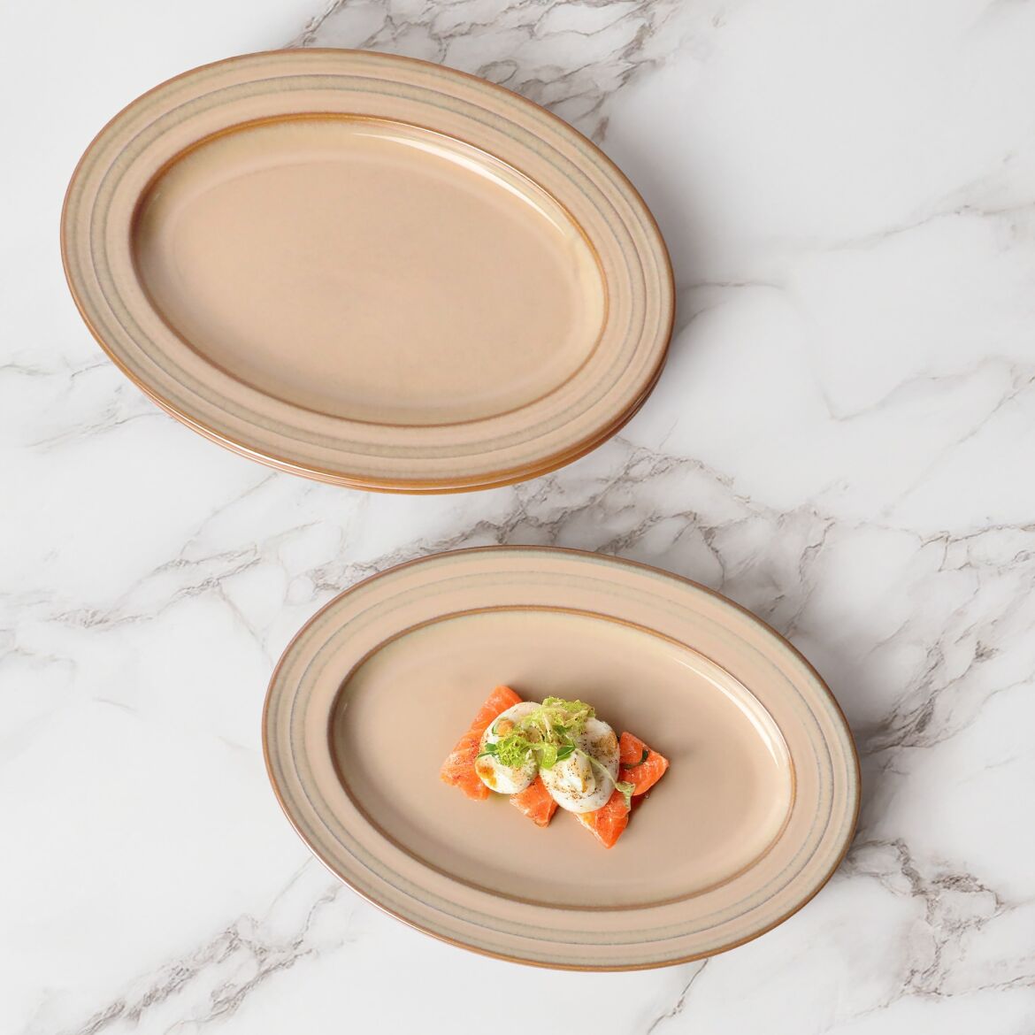 Reaktif sırlama işlemi her ürüne kendi benzersiz karakterini ve eşsiz derinliğini kazandırır. Bu özel bitirme tekniği, doku ve tonu harmanlayarak her sofra düzenine lüks ve zarif bir çekicilik katar.